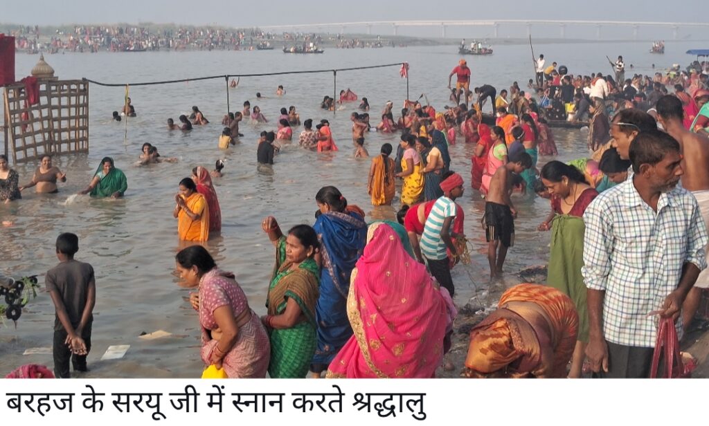देवरिया, के बरहज में कार्तिक पूर्णिमा का स्नान होने के उपलक्ष में दूर दराज से आए हुए श्रद्धालुओं ने सरजू जी के जल में स्नान किया स्नान के उपरांत पूजन और गोदान किया.